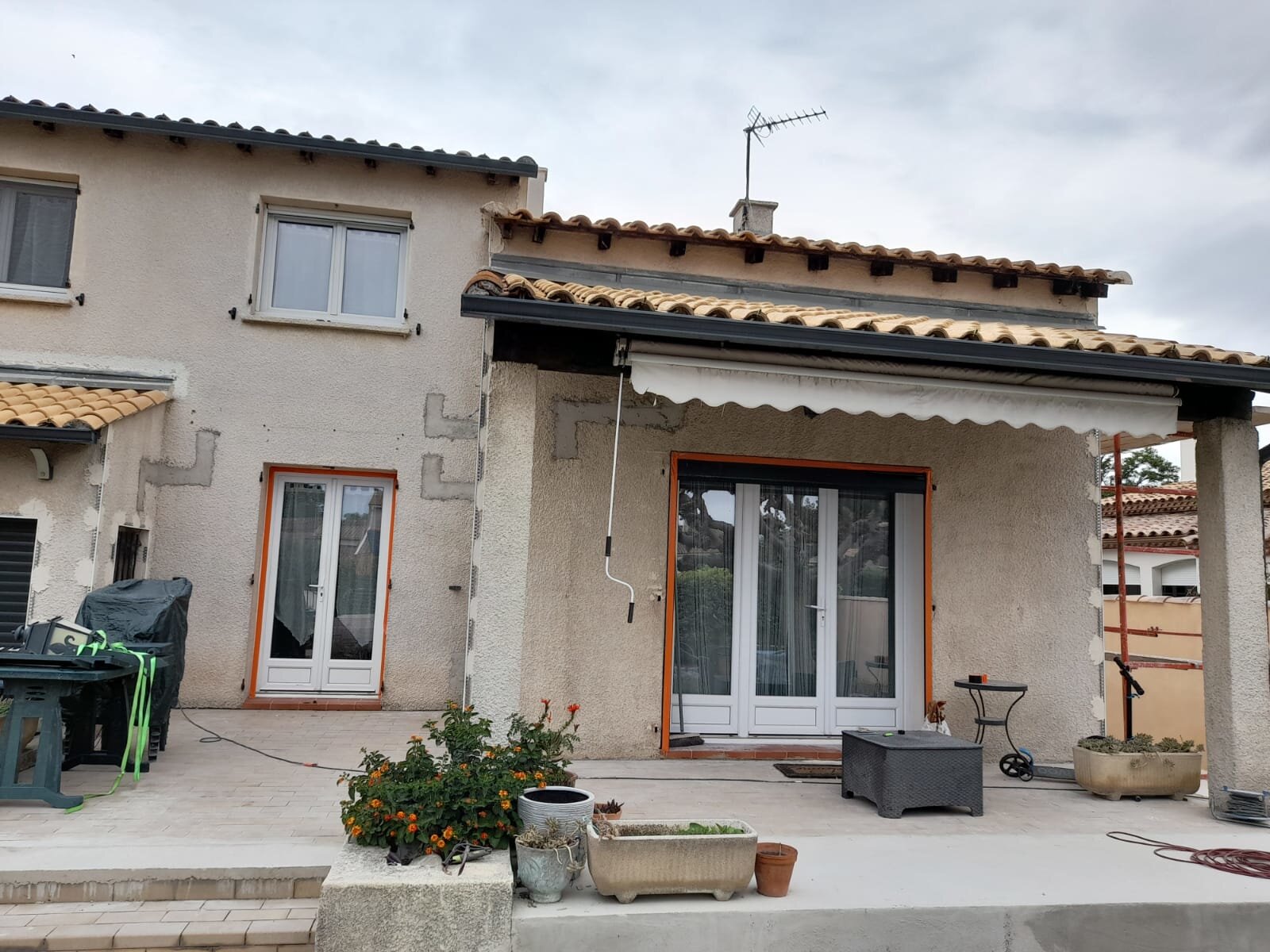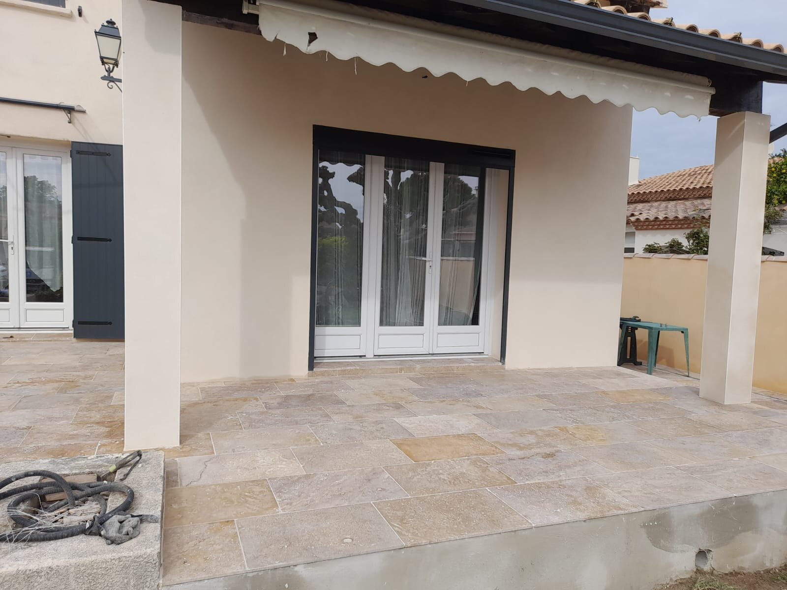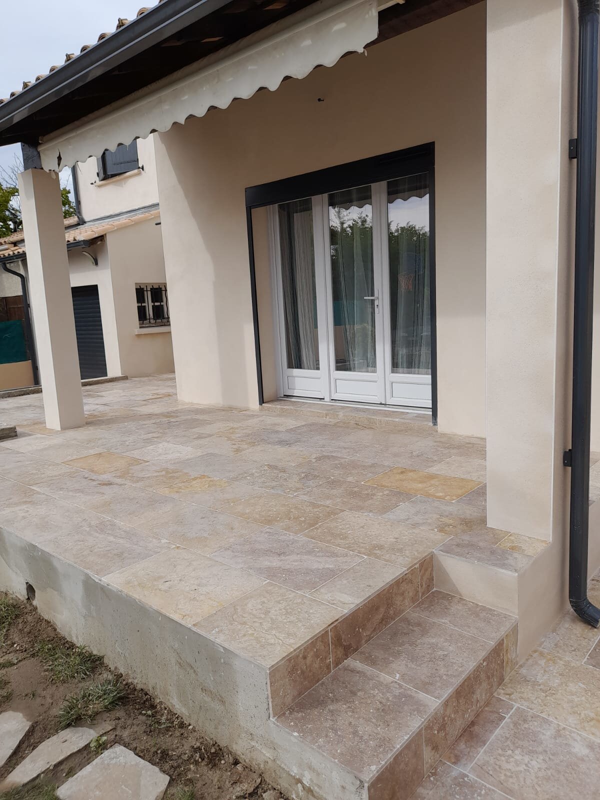 Ravalement de façade maison et pose de pierre en terrasse