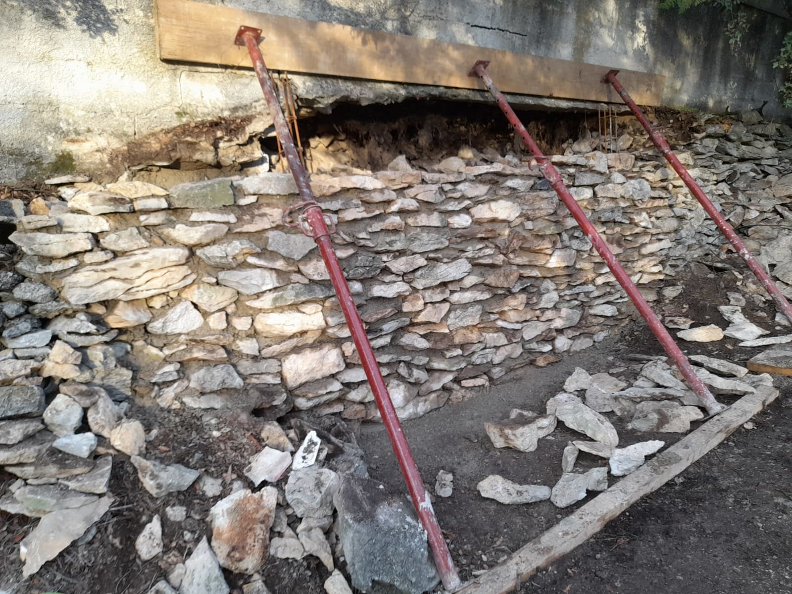 Rénovation d'un mur de soutènement, bâti en pierres