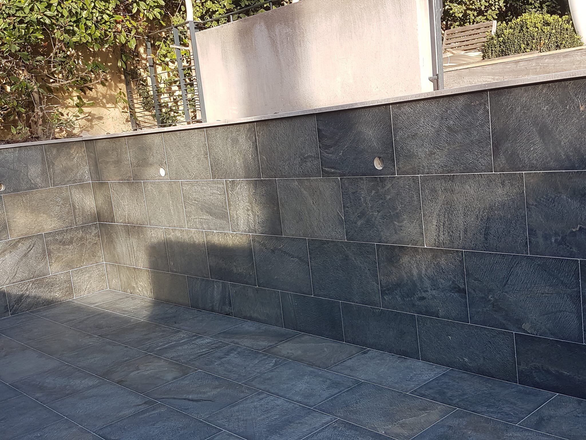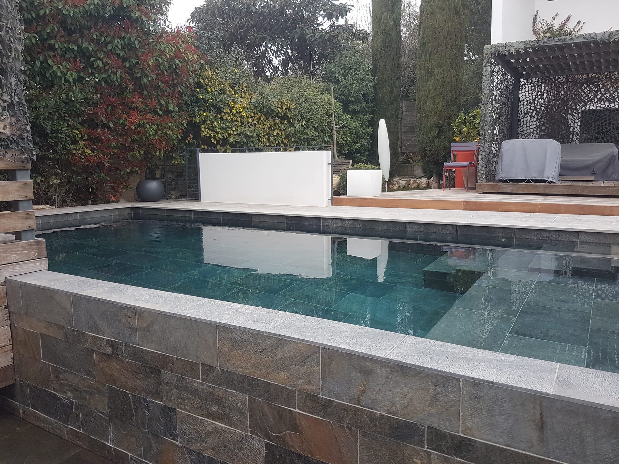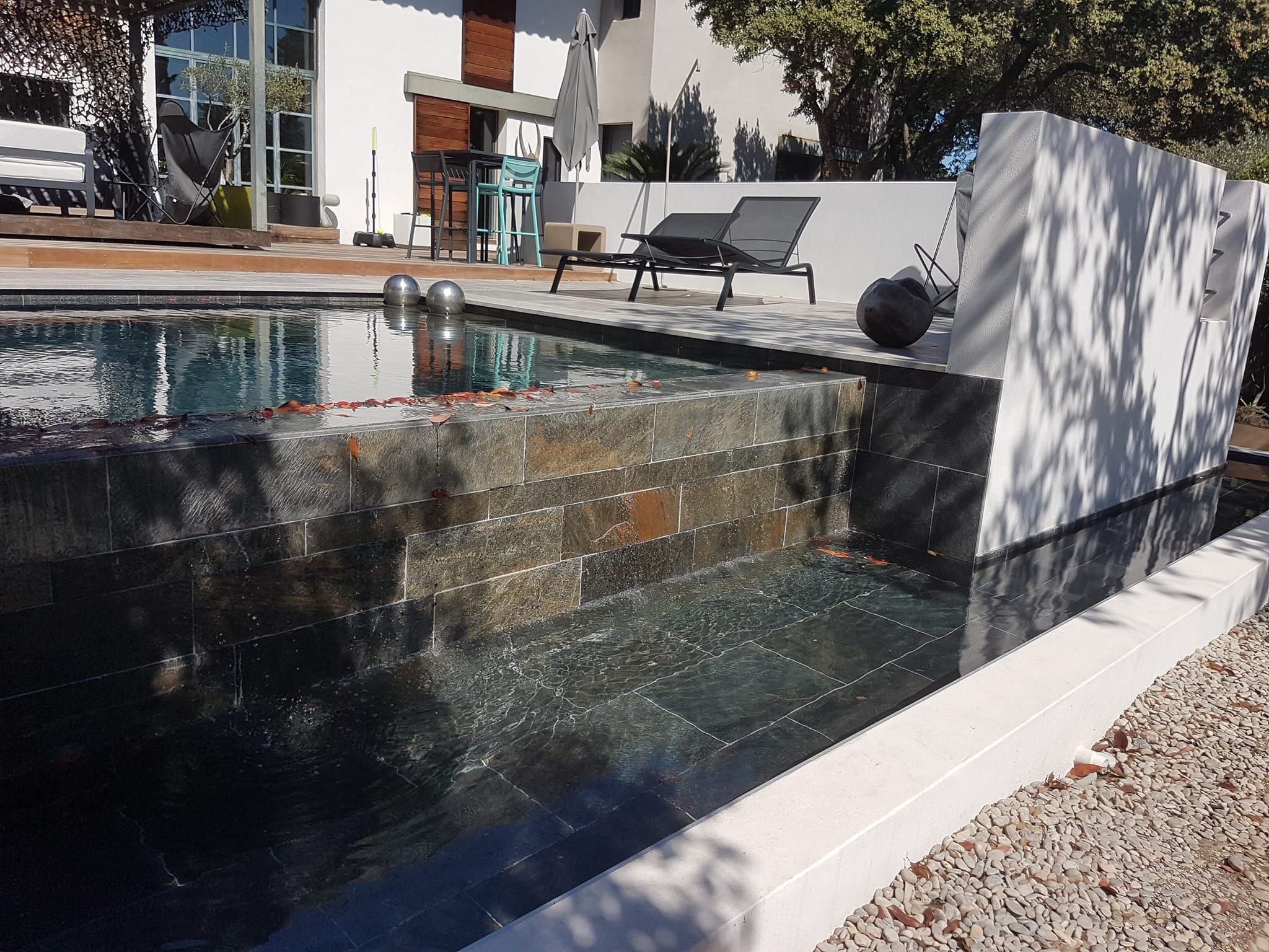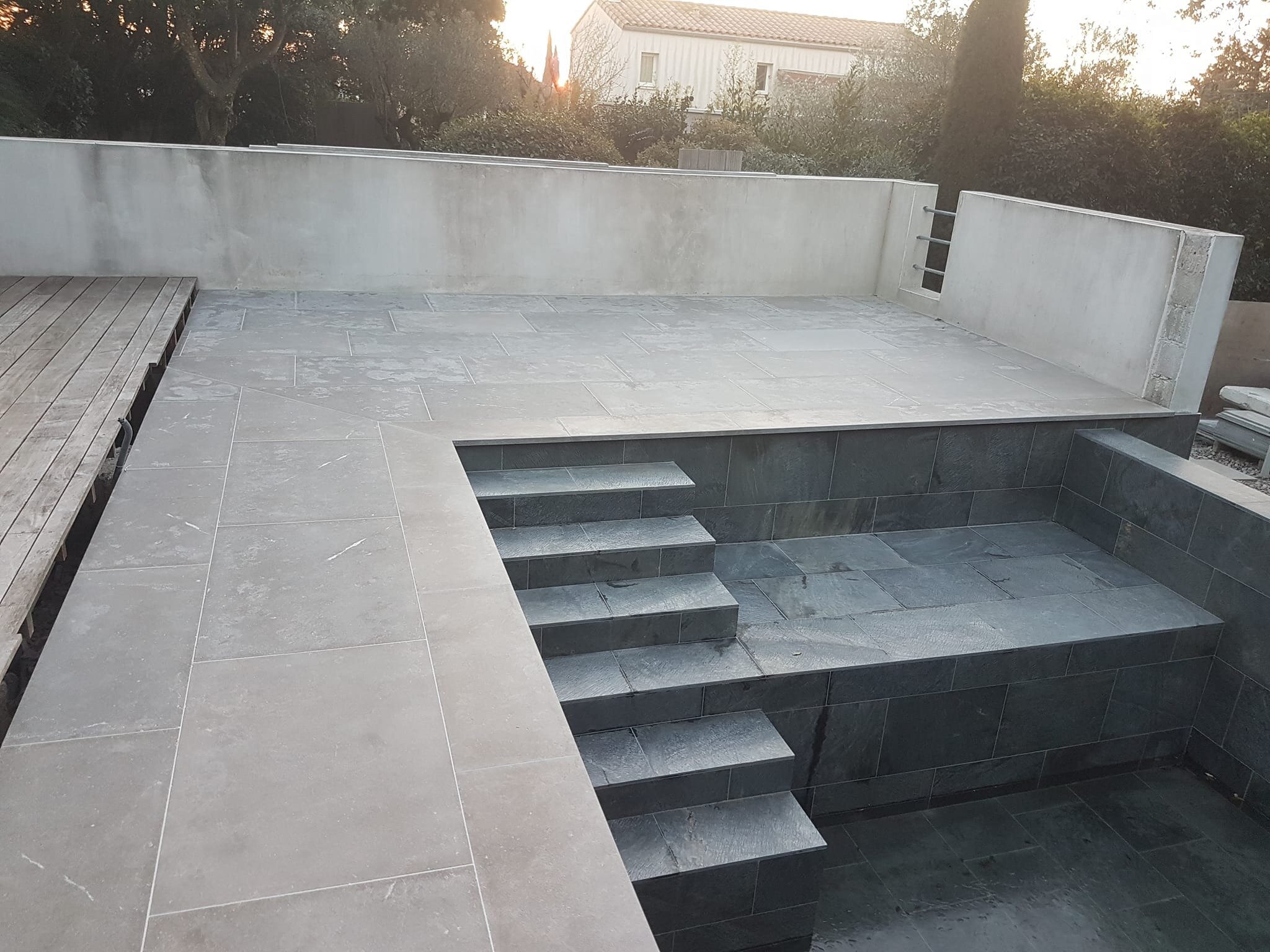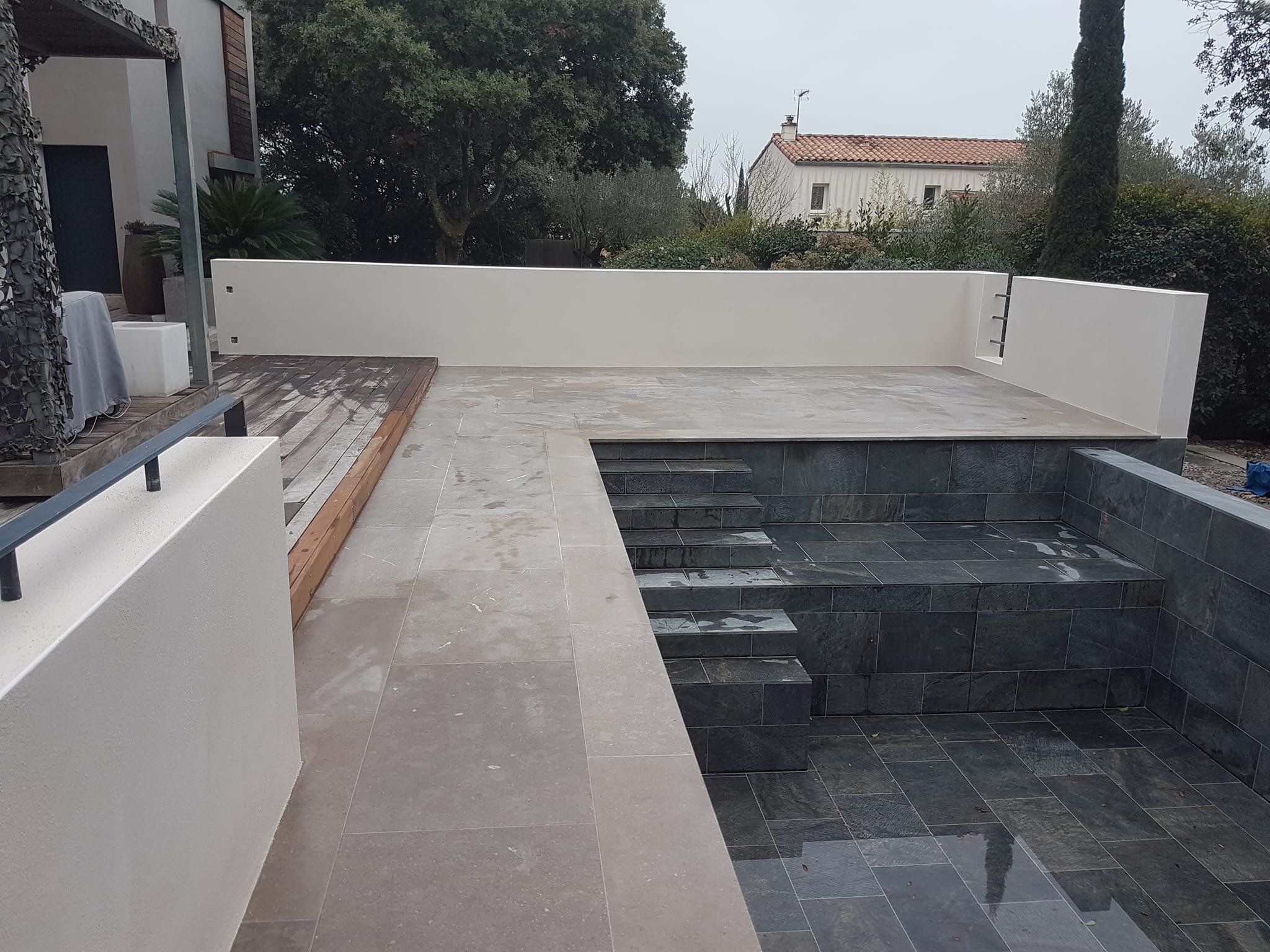 Rénovation de piscine à débordement et terrasse.