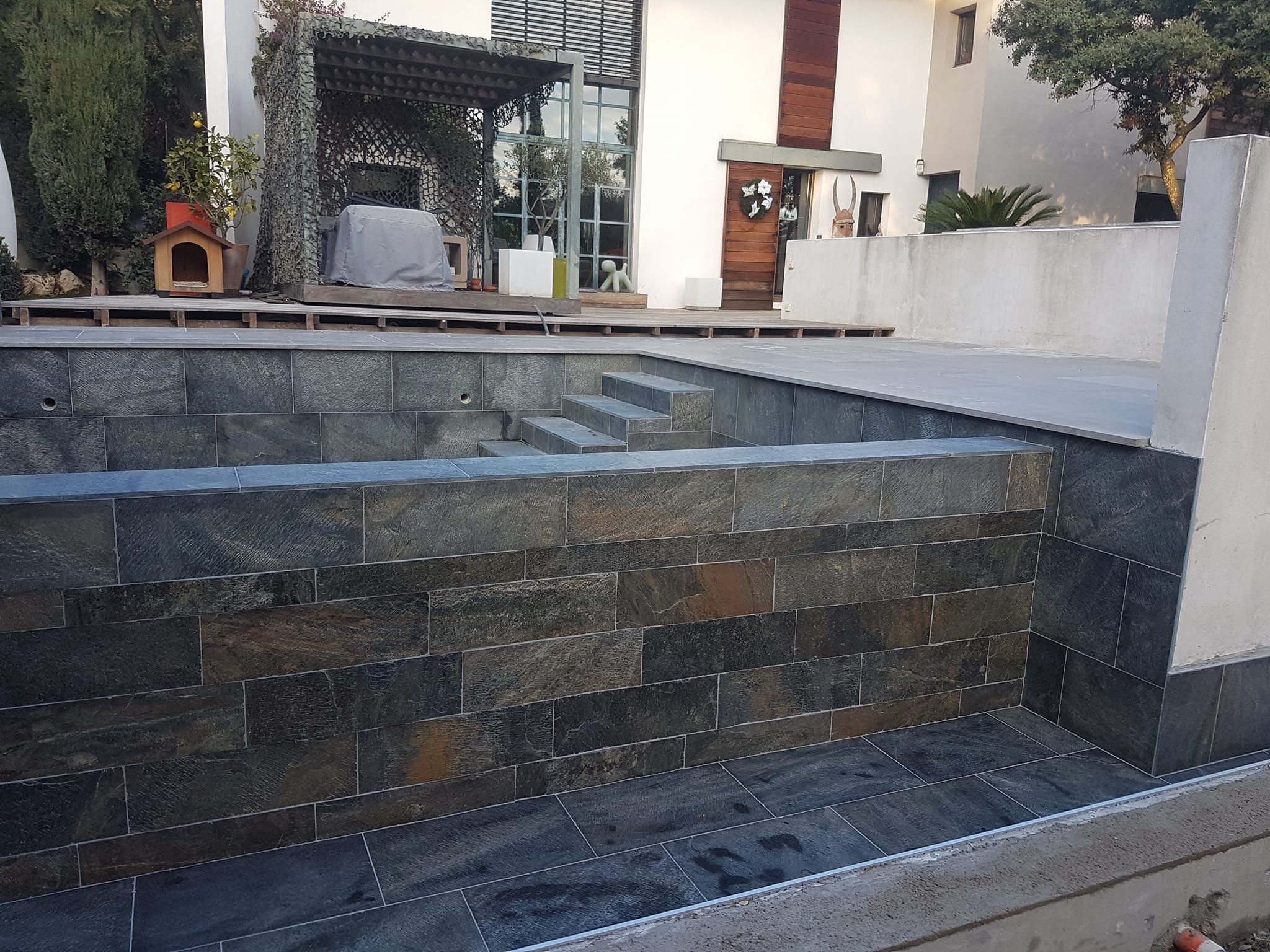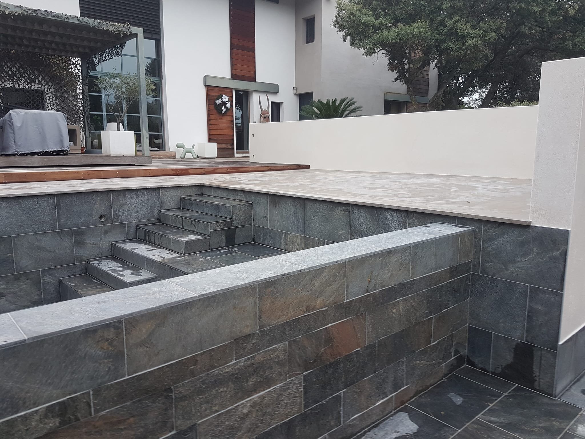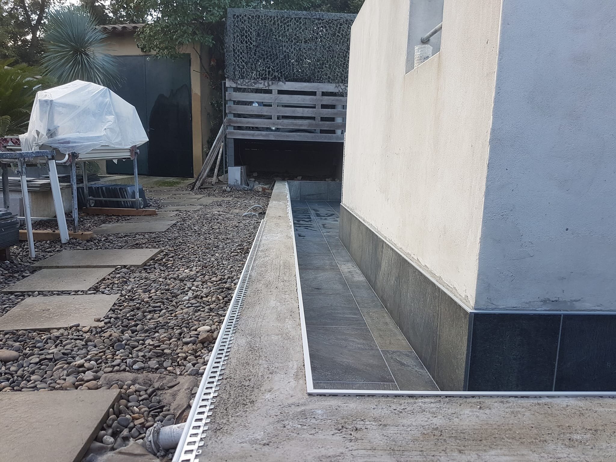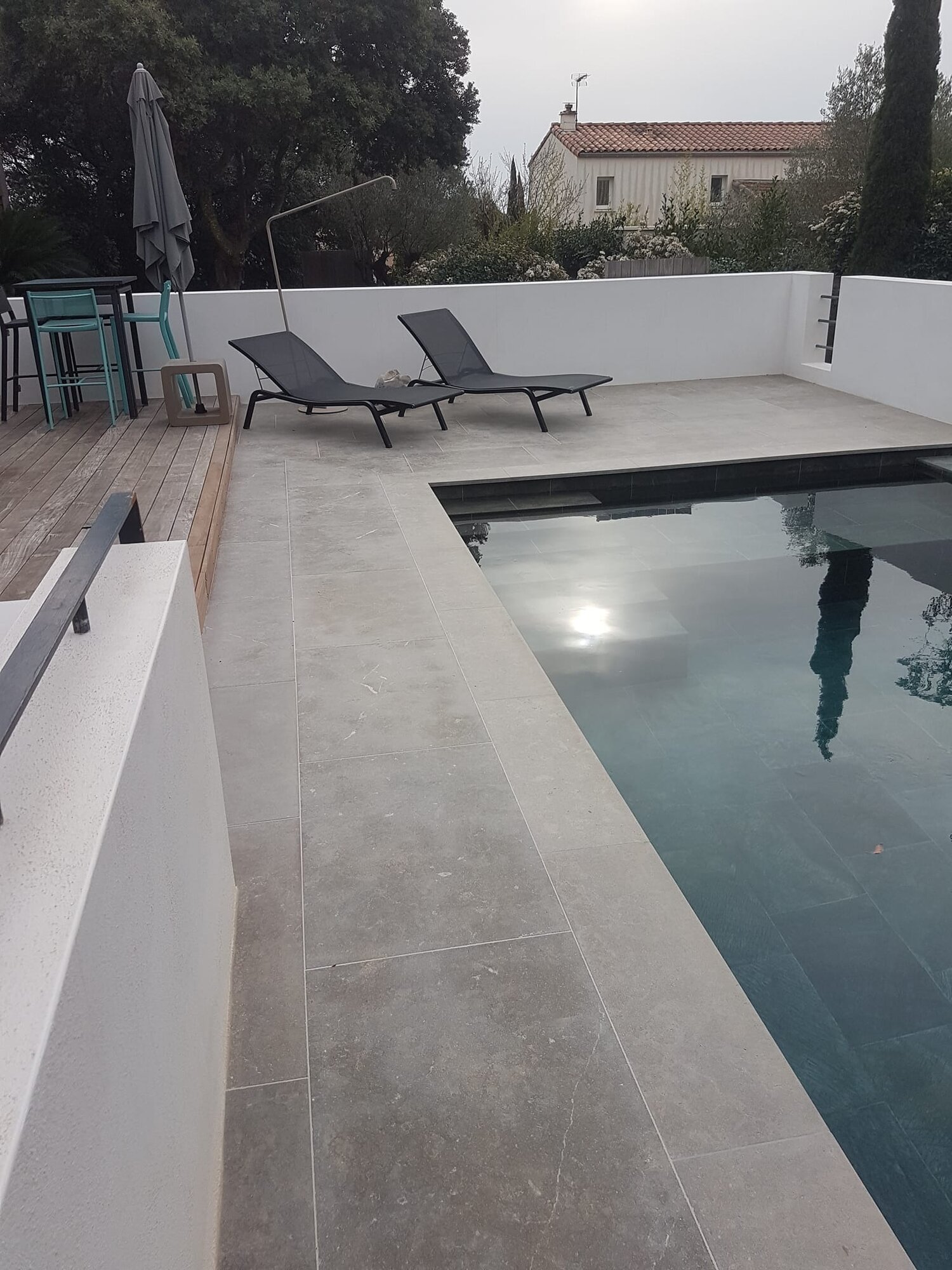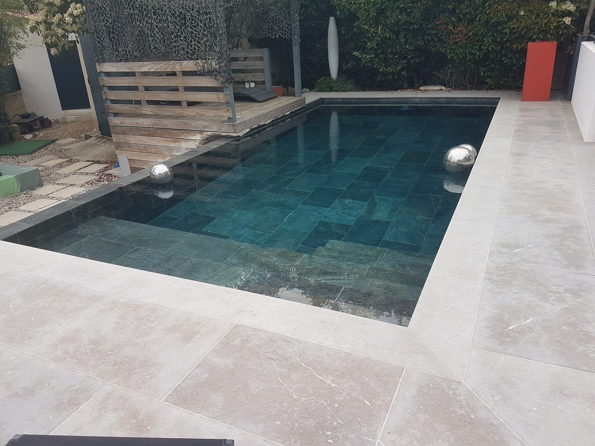 Rénovation de piscine à débordement et terrasse.