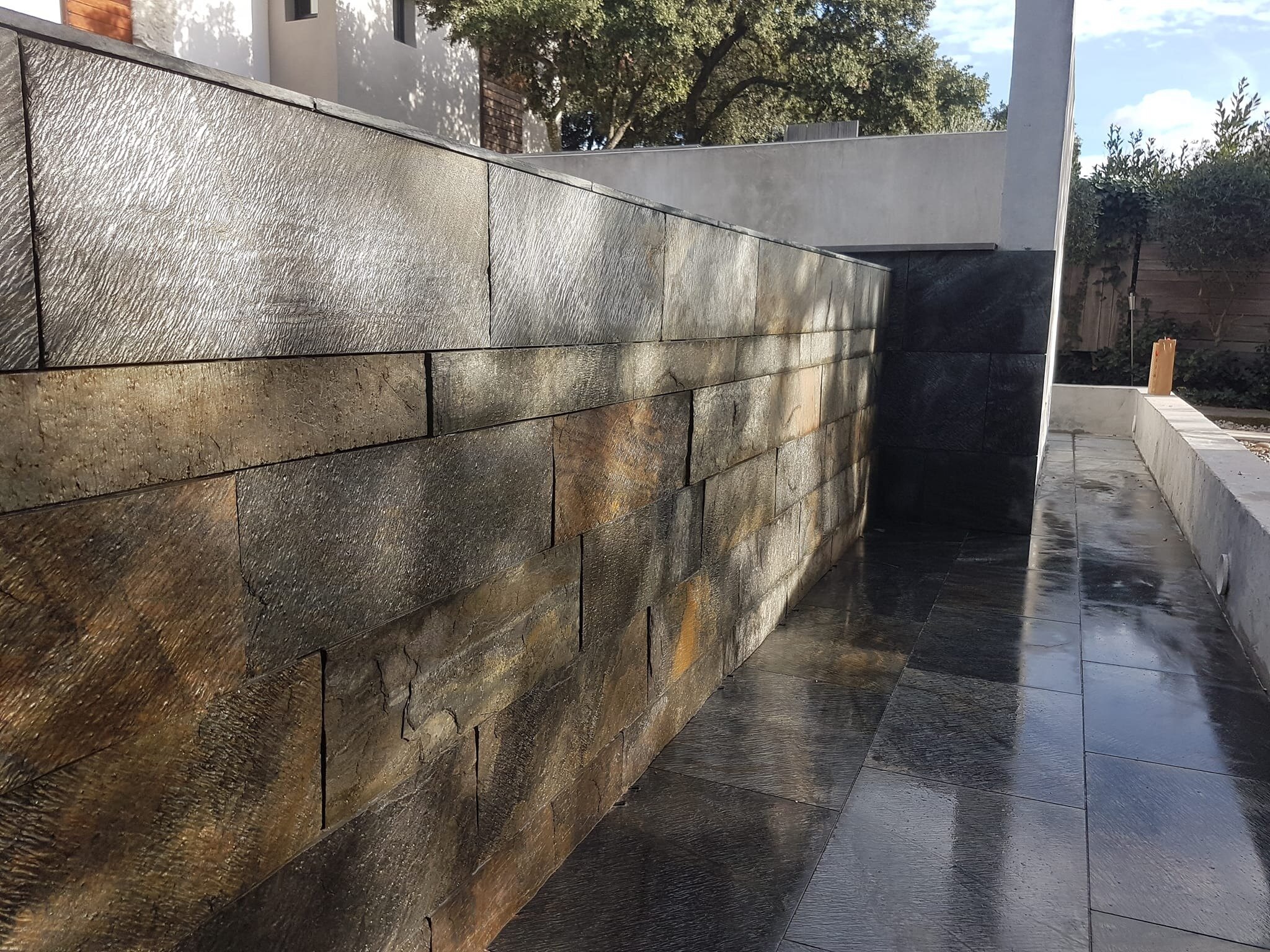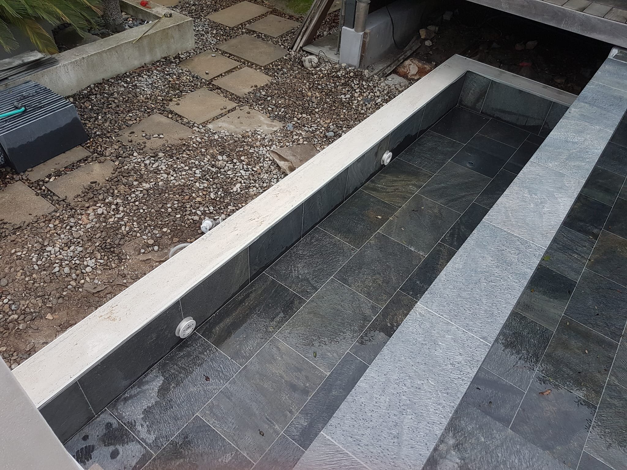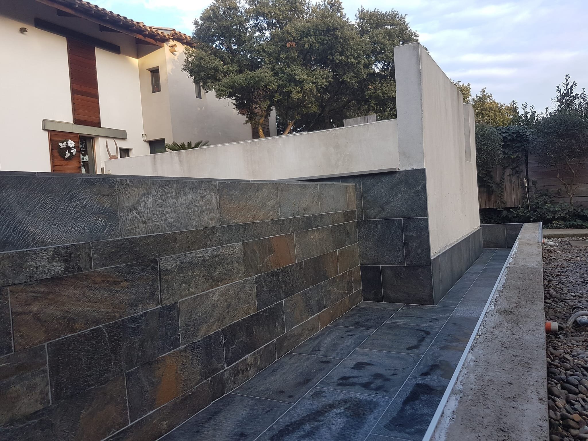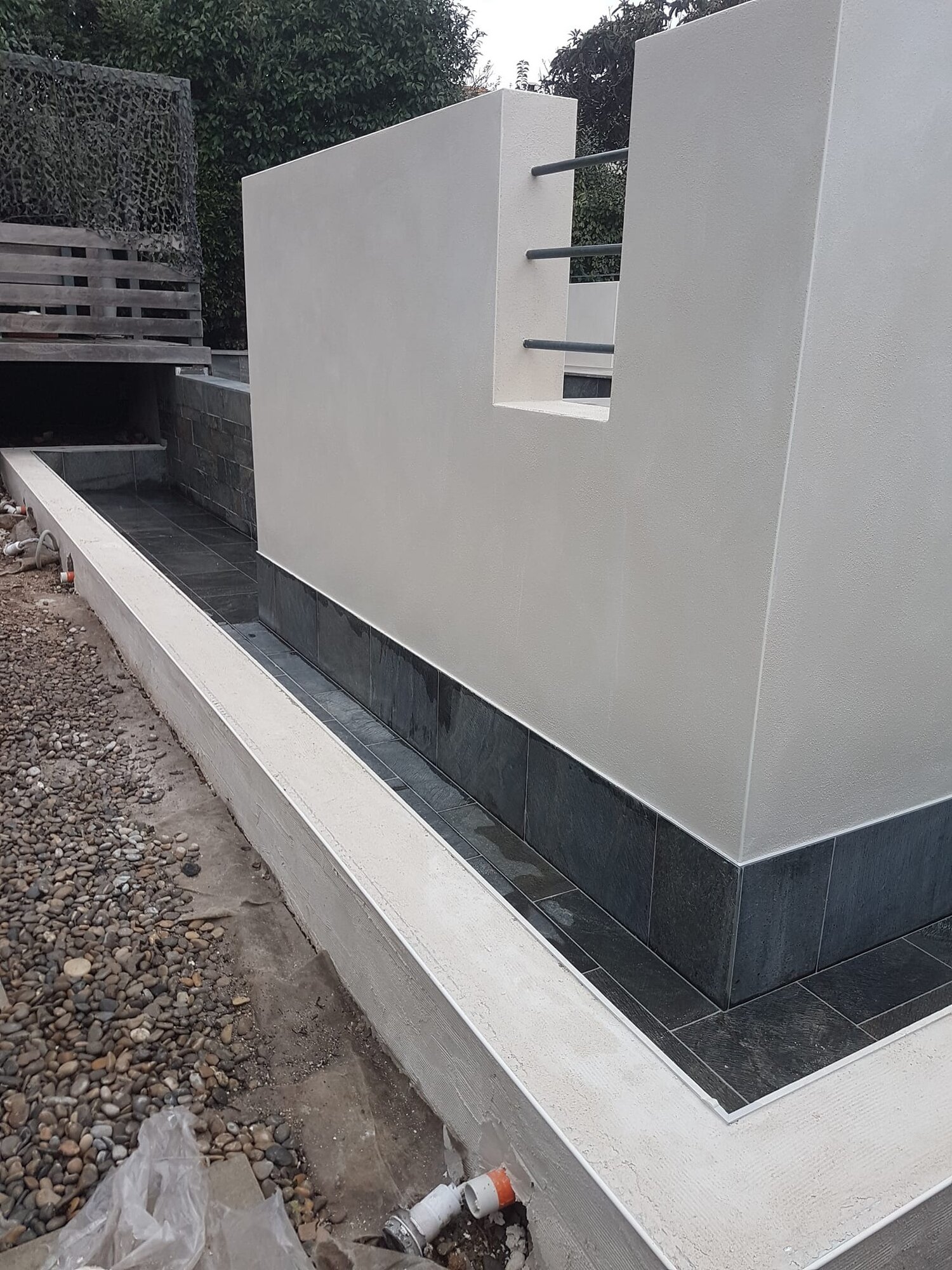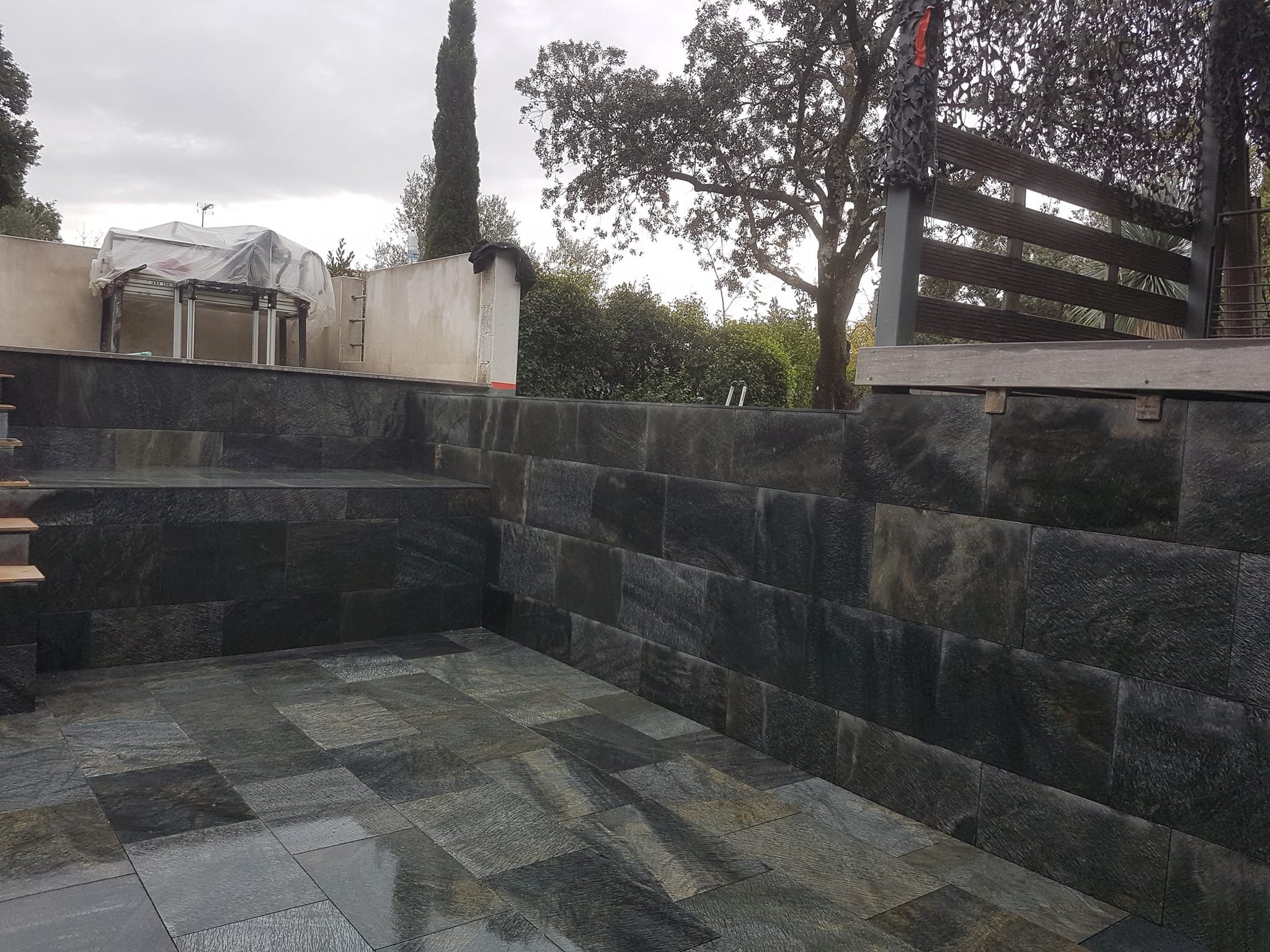 Rénovation de piscine à débordement et terrasse.