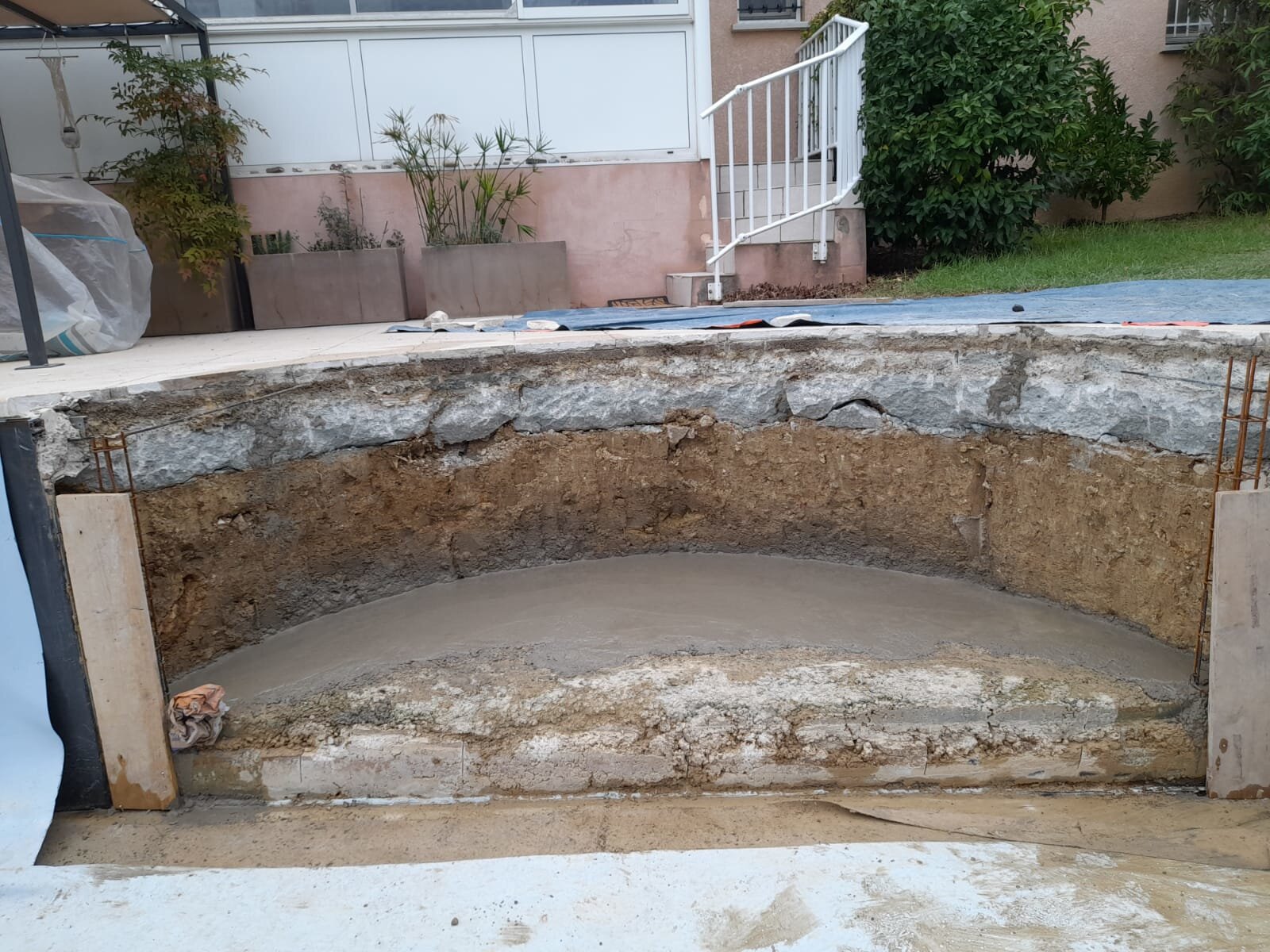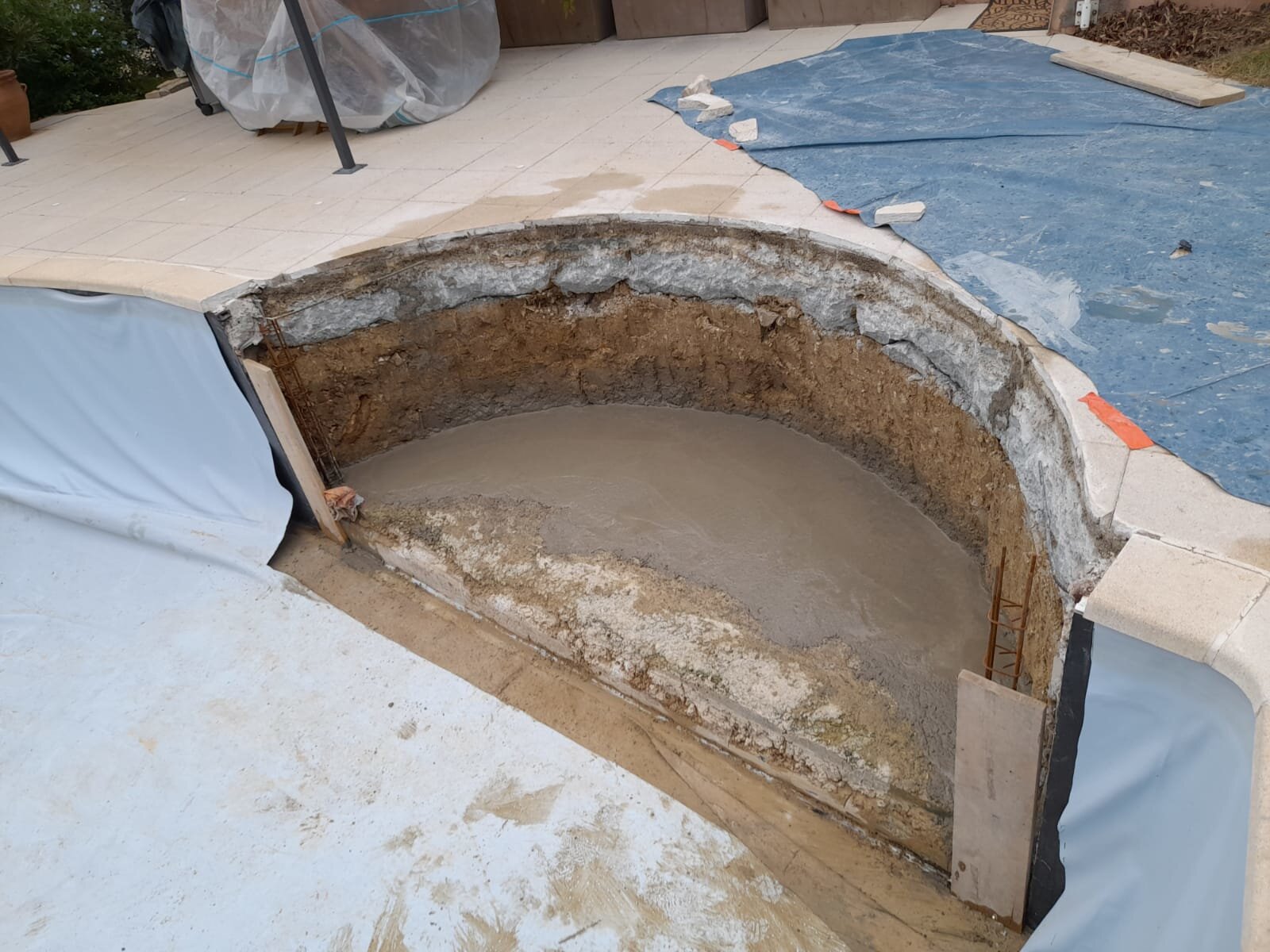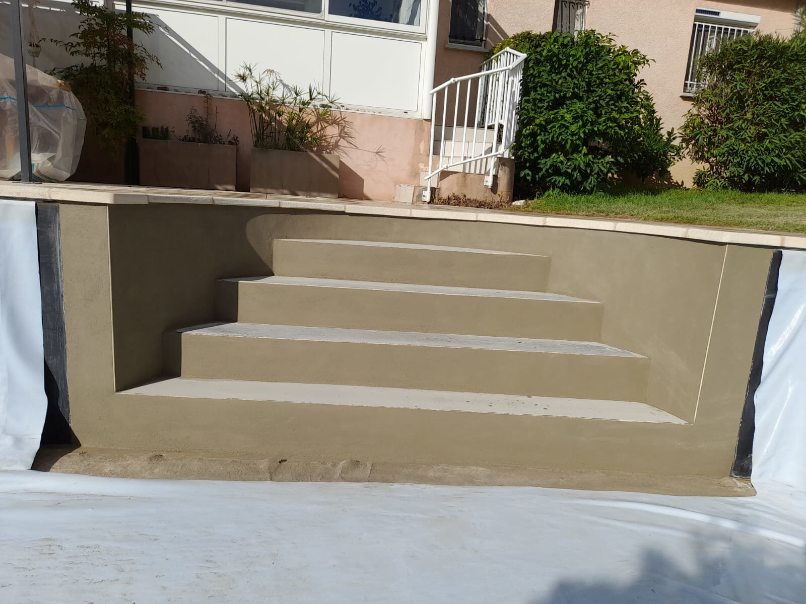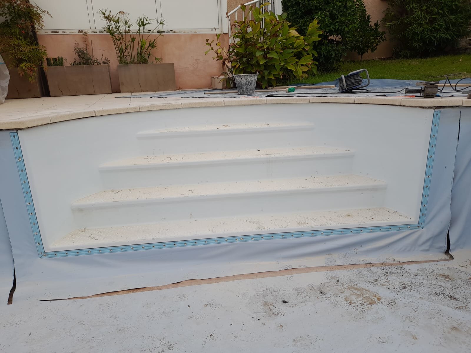Rénovation et création d'escalier dans une piscine en polyester