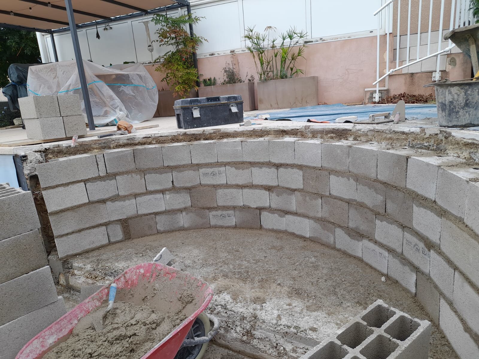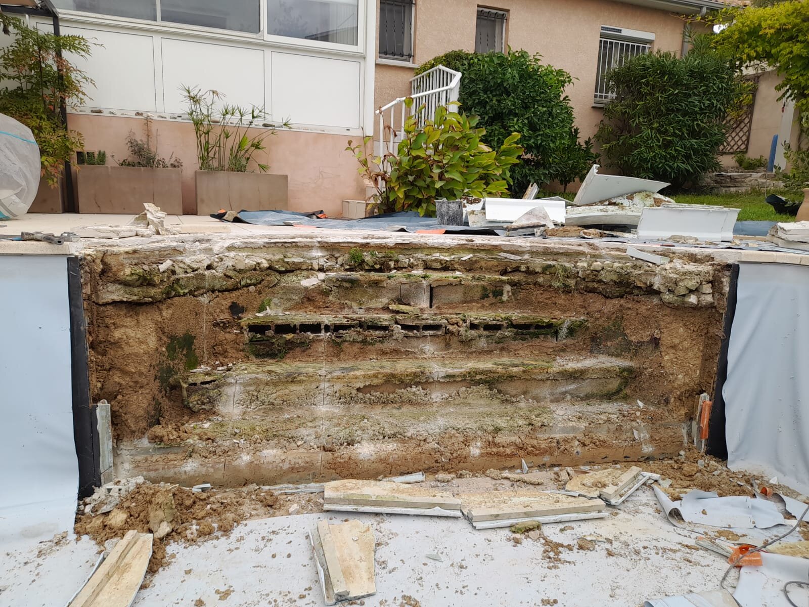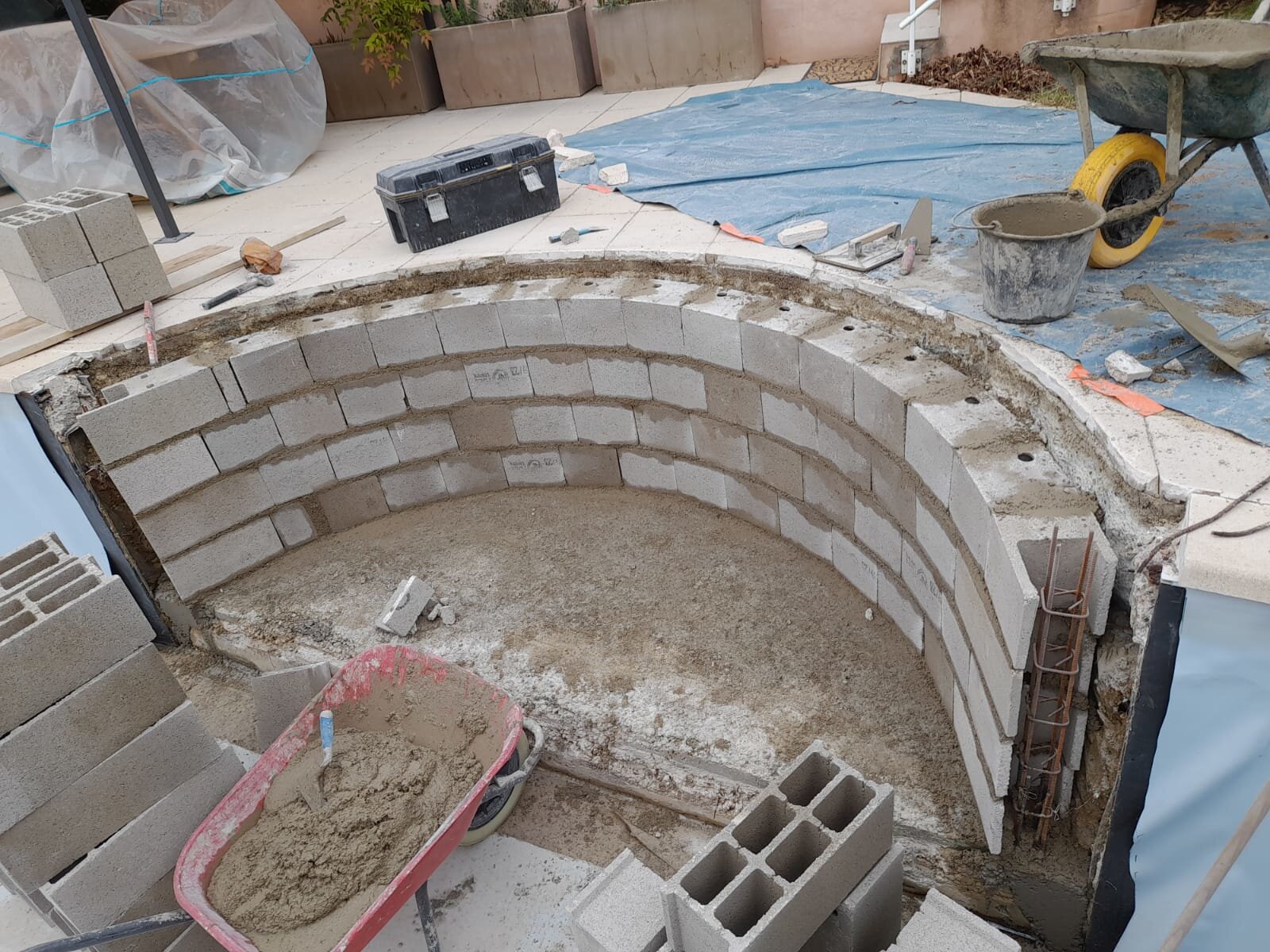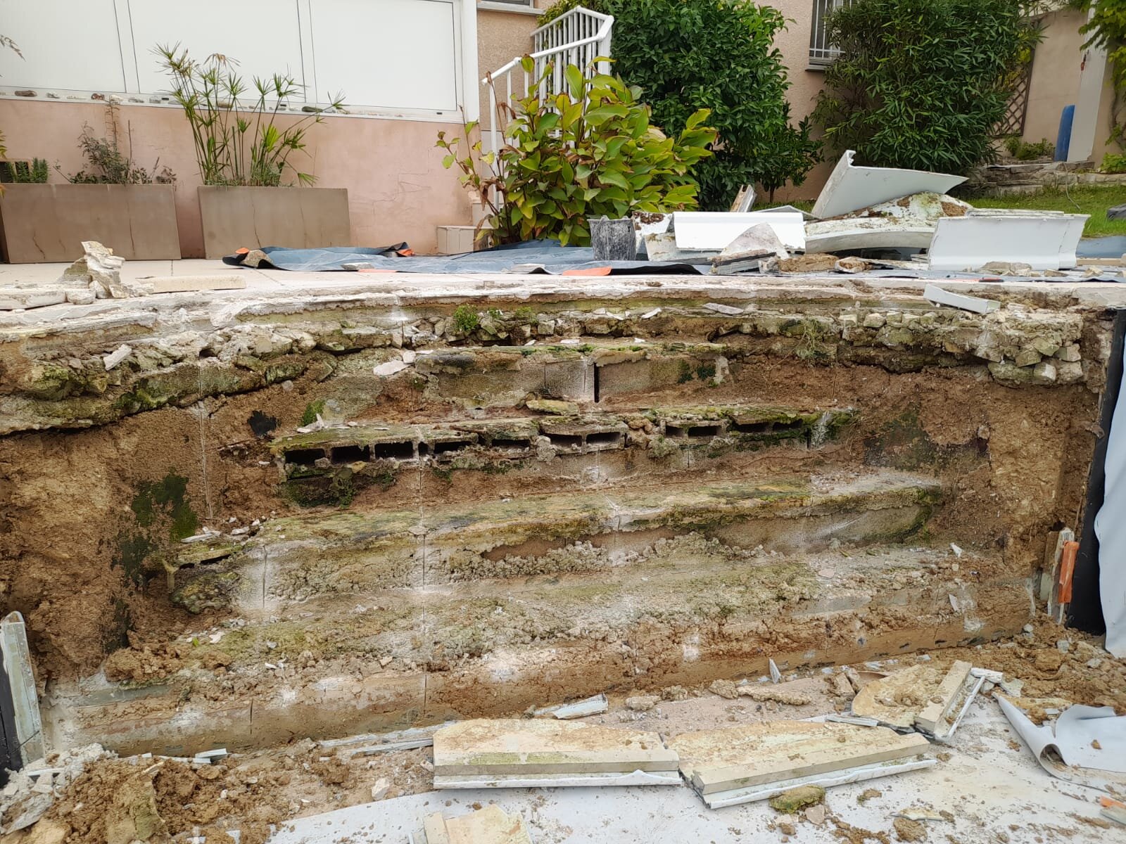 Rénovation et création d'escalier dans une piscine en polyester